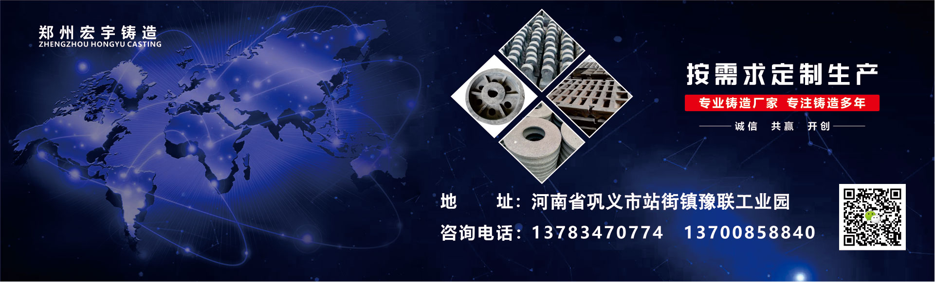 歡迎您訪問鄭州宏宇鑄造,專業生產生鐵機械配件、鑄鋼件、合金耐磨件,高絡合金錘頭、砂型工藝鑄件等!